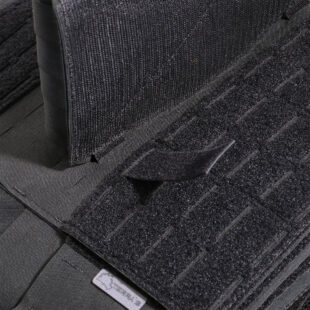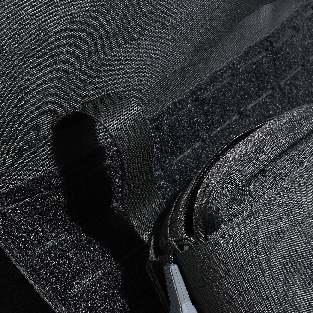 - Stabile Befestigung am Träger via G-Hook-Montage (vertikale Slots) und Hakenklett – sitzt flach, wackelfrei